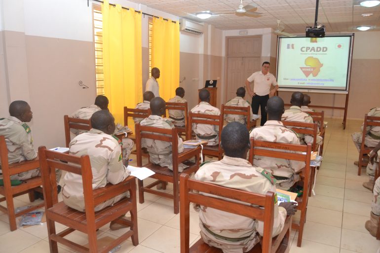 En 2018, l’UNMAS Mali est devenu le premier partenaire  du CPADD en nombre de stagiaires et en financement. Le CPADD a fait appel à la coopération militaire belge pour participer à l’encadrement du stage EOD2 qui s’est déroulé du 19 février au 30 mars 2018. Le CPADD centre de perfectionnement aux actions post-conflictuelles de déminage et de dépollution a été créé en 2004 d’une initiative franco béninoise pour fournir au continent une capacité de formation dans le domaine du déminage humanitaire (suite à la signature des accords d’OTTAWA de 1998).