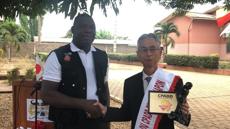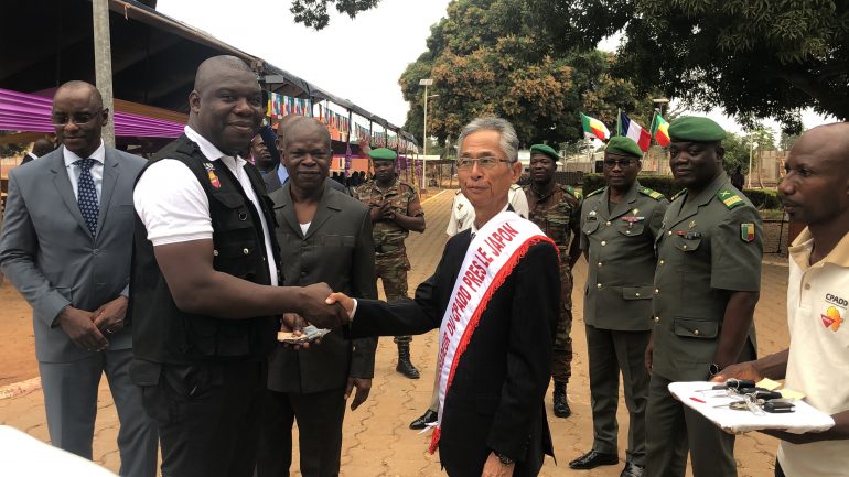 Le 24 janvier 2019 au CPADD/Ouidah, nous avons assisté à la pose de première pierre d’un bâtiment de type R+1 et à la remise officielle des clés de 4 véhicules. Il s’agit d’un véhicule 4×4, d’un bus de 20 places et de deux pickups (5 places). Ces actions sont réalisées dans le cadre du projet PAMCo-PRC/CPADD, mis en œuvre par le Ministère de la Défense Nationale avec l’appui financier du Japon et l’accompagnement technique du PNUD.